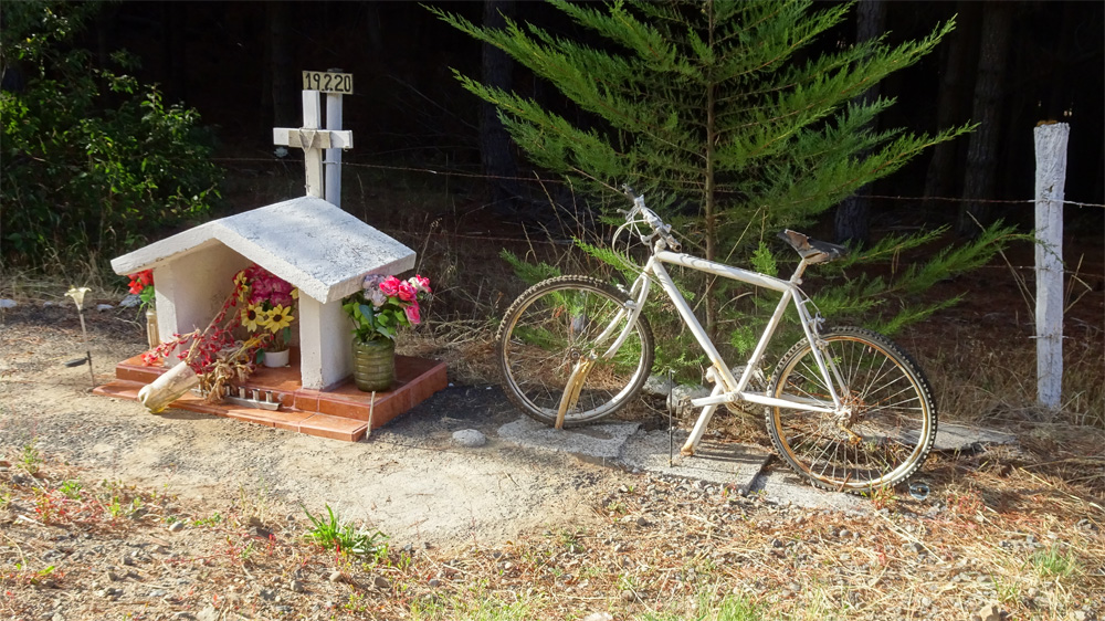 So schön wie der Tag in dem Hostel begann verlief er im weiteren Verlauf nicht. Nach kaum zwei Stunden die erste Panne mit mehreren Versuchen einen Schlauch abzudichten, doch den Kleber, den ich gekauft hatte war wohl nicht der richtige. So hielt die Luft nicht und nach weiterer Strecke Wechsel des Schlauches der hatte aber ein Autoventil, im Durchmesser dicker als die vorgesehene Öffnung meiner Felge, als Loch vergrößern mit einem Schraubenzieher. Gerade fertig mit dem Schlauchwechsel stand James vor mir und wir fuhren zusammen nach Temuco. Morgen Ersatzteile in Temuco kaufen!
