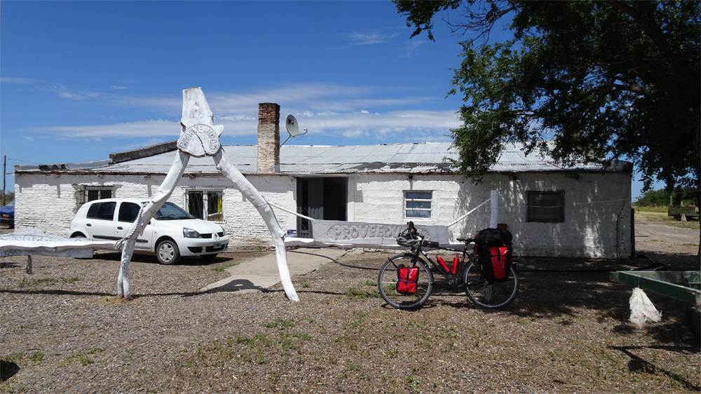 Nach ca. 20 Kilometern hielt plötzlich ein Geländefahrzeug neben mir an. Er hatte mich zuvor schon überholt und zeigte wohl Mitleid, er sah, wie ich gegen die seitlichen Böhen ankämpfte. Kurzum, er nahm mich mit ich hatte nichts dagegen und brachte mich bis zu einem Campingplatz in Las Grutas. Wir unterhielten uns ausgiebig, die Fahrt kam mir vor wie im Flugzeug, nach drei Wochen des Radfahrens.