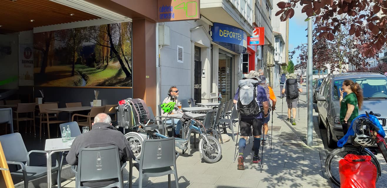 15. Fahrtag 47,5 km 675 Hm 3h37´ Ventas de Narón bis Arzua eigentlich wollten wir noch etwas in Richtung Santiago de Compostella fahren, doch ein kleines Kippen des Rads von Hans verhinderte dies. Nach einem Hotel „Suiza“ nach ca. 800 Meter fuhr Hans mit seinem rechten Hinterreifen leicht in einen Graben und rutzsche in diesen hinein. Er konnte nicht sich selbst aus der misslichen Lage befreien, Autofahrer*innen hielten an, ich wartete nach einer Kurve, konnte das Geschehen nicht verfolgen, bis eine Fahrerin mir Bescheid gab. Wir halfen Hans auf, es schien ihm nichts passiert zu sein. Ein Dame hatte aber schon den Rettungswagen angerufen, er kam bald und auch die Polizei. Wir entschieden Hans mit Taxi zurück an das nächste Hotel zu fahren, ich mit Rad, Taxi wieder zum zweiten Rad und wieder damit zurück zum Hotel. Abends gingen wir zu Fuß in den nahegelegenen Ort.