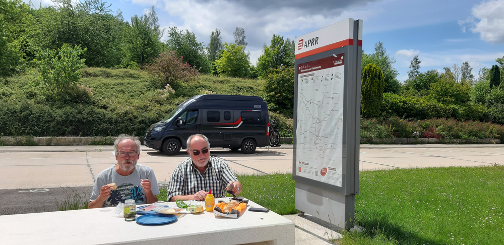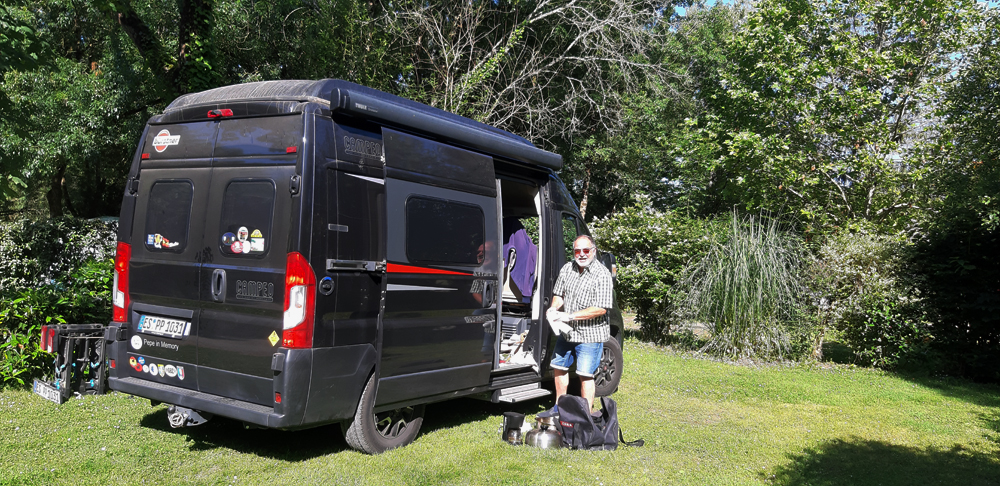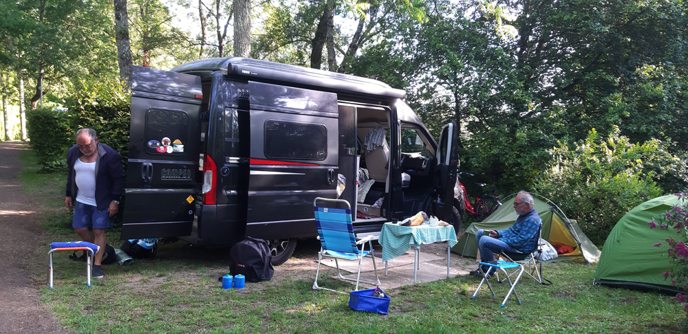 | Auf dem Camping Belle Rivière - ca. 11 Kilometer vor Zentrum Nantes verblieben wir drei Nächte, die dritte Nacht mit unserem Wohnmoblifahrer Jochen.